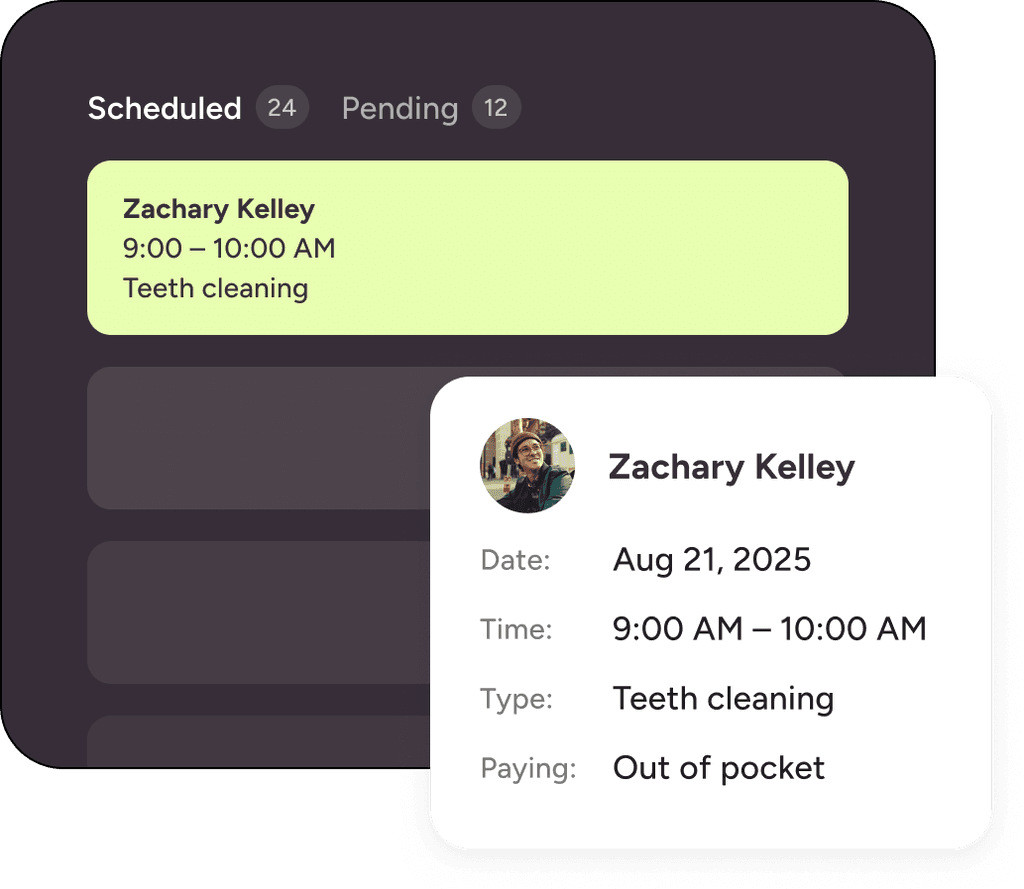 We can connect directly with your practice management or scheduling software (like NexHealth). If you don’t use one, our team still handles booking and provides a dashboard for tracking every new patient and completed appointment.
